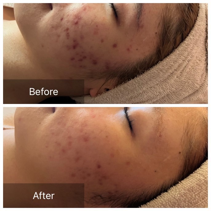 レーザーや医療用機器などの出力の高いものとは違い、マイルドな光になっております。痛みはほとんどなく、肌に優しい施術ができますので、終了後すぐに洗顔やメイクも可能です。
